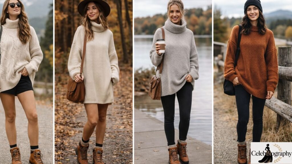 Oversized sweaters paired with hiking boots create a cozy and relaxed outfit that is perfect for colder months. This look is a key part of hiking boots seasonal outfits, especially during fall and winter in the USA. The loose fit of the sweater adds comfort, while the boots bring structure and strength to the outfit. This balance makes the look both stylish and practical for everyday wear.